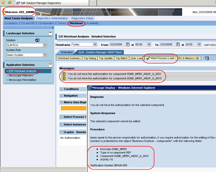 When I execute RCA workload analysis on Work Process Load of ABAP stack, it comes out an error message " You do not have the authorization for component 0SMD_MPEH_ABAP_Q_0031".