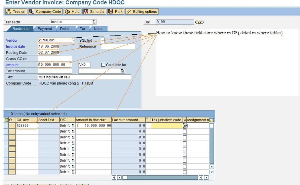When i inter a invoice for vender with T.code FB60, then i want to know these fields entered store where in table in DB